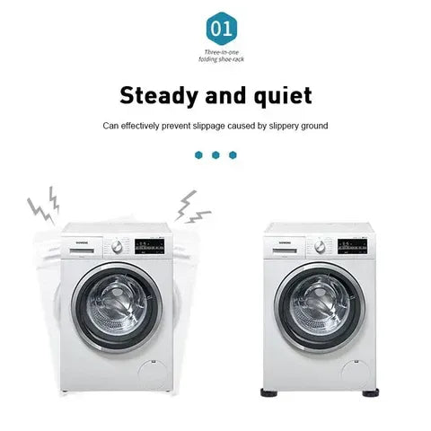 These Anti-Vibration Machine Support Pads (Pack of 4) offer excellent bearing capacity, toughness, and wear resistance, ensuring long-lasting performance. Designed to maintain perfect balance, they reduce impact and noise by stabilizing your washing machine at an optimal angle. Their moisture and corrosion resistance enhance durability in various environments. Installation is simple and tool-free—just lift each corner of the machine and slide the pads into place for immediate noise absorption and improved stability. Ideal for protecting your equipment and extending its lifespan.